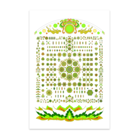 密教の宇宙観を視覚化し絵図にしたものの一つ、胎蔵曼荼羅をオリジナルで制作しました。 曼荼羅模様による曼荼羅、というギャグ要素も入ってます。 一尊一尊を線対称にし、その働きを意識して描きました。似た働きの仏同士では似た線を入れましたので、探してみるのも面白いと思います。 こちらはポストカード(1セット10枚)作品です。ご購入の際はお確かめください。 シリーズ一覧はこちら↓ https://chimeraempitsu.booth.pm/item_lists/mEoT2Gzk ※この商品はpixivFACTORYで作られた商品です。サンプル画像は完成イメージのため、実物と異なる場合があります。
