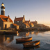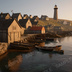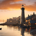 【2k背景素材】夕暮れの漁村と岬の灯台|10枚セット