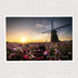 ポストカード 夕日に染まるコスモスと風車