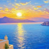 サントリーニの夕景・穏やかな地中海風アートで癒しの空間に