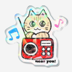 リアル猫Vtuber夏目ニアの、配信ラジオ『ANN〜おーる・にゃいと・にっぽん〜』公式アイテム! キラキラかわいいホログラムアクキー⭐︎ラジオに寄りかかるお猫と一緒にノリノリでいこう! ※この商品はpixivFACTORYで作られた商品です。サンプル画像は完成イメージのため、実物と異なる場合があります。