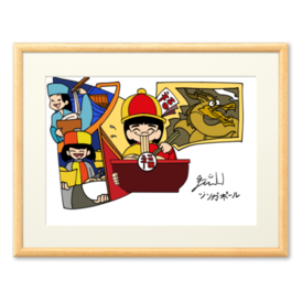 複製画(プリモアート) - A3タイトル:みんなラーメンで福が好き! 福を呼ぶラーメンで、幸運がどんどん広がる―― このプリモアートは、アジアの伝統と笑顔をテーマにした作品です。 皇帝風の子どもが美味しそうにラーメンをすすり、船乗りや市民たちも笑顔でラーメンを運ぶ、どこか懐かしくも楽しい世界。 「福」の字が入った丼ぶりは、長寿と繁栄を願う象徴として描かれています。 幸運と縁起を感じる一枚を、あなたの空間にどうぞ。 プリモアートの新シリーズとして販売中!