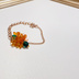 ■orange bouquet■ 夕焼けに染めたようなお花のポシェットです。 花のエネルギーに負けない、濃い緑のビーズがアクセントとなり、可愛いです。 花の部分はチェーン上で左右に動かせませんが 細めのチェーン部分とアジャスター用の 大きめのチェーン部分が半分ずつで ぬいちゃんにつけやすくなっています。 ぬいちゃんのサイズ、もしくは斜めがけの長さを 測って教えてくだされば、こちらでアジャスターの 長さを調整して、お送りします。 ご希望の方はご購入後メッセージください。 --------attention-------- 溶接のチェーンでなく丸カンを繋いでいる 部分があります、横方向に強く引くと 壊れてしまう可能性があるため 優しく扱っていただくようお願いいたします。 --------size-------- ほわぬいちゃん(8cm)にあわせて作りましたが お洋服着用のほわちゃんもつけられるように アジャスターは長めにしております。 10〜11cmぬいちゃんでもギリ着用可能です。 アジャスター部分の金具は切れ目があるので もし長すぎる場合は簡単に調整していただけます。 花の部分含め、全長約12cm前後 ※販売はストラップのみです。 ぬいちゃんやお洋服などは含みません。