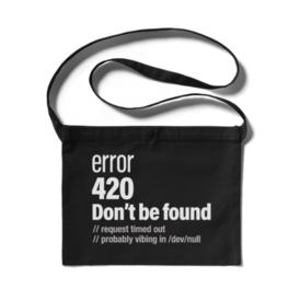 エラーコード404にインスパイアされた「error 420 Don't be found サコッシュ」です! 好き者のデザイナーさん、エンジニアさん、コーダーさん、また420カルチャーが好きなひとに着ていただけるとうれしいです(σ⁎˃ᴗ˂⁎)σண♡* Don't be found ➡️見つかるなよ // request timed out ➡️リクエストがタイムアウトしました // probably vibing in /dev/null ➡️今は /dev/null でまったり中 ⚠️この商品はpixivFACTORYで作られた商品です。サンプル画像は完成イメージのため、実物と異なる場合があります。