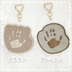 ・布:綿100% ・丸カン、キーホルダーパーツ:鉄 ・サイズ: 【サイズ詳細】 全長(キーホルダーパーツ込み) ・手足タイプ:約14~15.2cm 本体サイズ(キーホルダー部分のみ) ・通常:幅8.8cm × 高さ8.3cm ・ゆるい形:幅8.8cm × 高さ8.5cm 共通仕様 ・本体厚み:約3mm ・キーホルダーパーツ:長さ4.1cm × 幅2.2cm ※ハンドメイド商品のため、多少の個体差がございます ※手形の長さが8.5cm以内の場合は実寸サイズでお作りします。8.6cm以上だと縮小サイズになるため、ご了承ください。