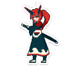 緋色の衣を纏った剣士”ヒノエ”のオリジナルアクリルキーホルダーです。 通常版と鬼人版の二種類、それぞれ50x50mmと70x70mmの二つのサイズがあります。 ※実際の商品のサイズは表記上のものより一回り小さめになります。
