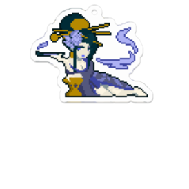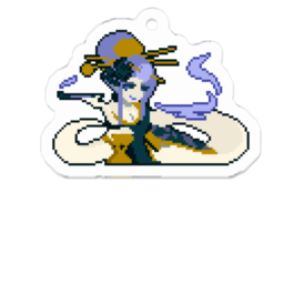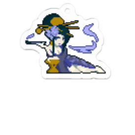 紫煙をくゆらす花魁”シエン”のアクリルキーホルダーです。 通常版と大蛇版の二種類、それぞれ50x50mmと70x70mmの二つのサイズがあります。 ※実際の商品のサイズは表記上のものより一回り小さめになります。