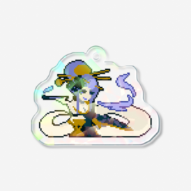紫煙をくゆらす花魁”シエン”のホログラム加工キーホルダーです。 通常版と大蛇版の二種類、それぞれ50x50mmと70x70mmの二つのサイズがあります。 ※実際の商品のサイズは表記上のものより一回り小さめになります。