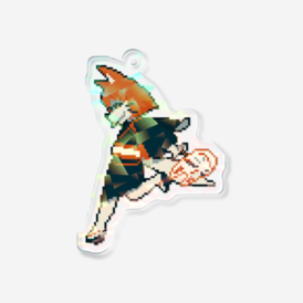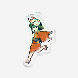 狐面を被った丹色の童”コン”のキラキラアクリルキーホルダーです。 通常版と妖狐版の二種類、それぞれ50x50mmと70x70mmの二つのサイズがあります。 ※実際の商品のサイズは表記上のものより一回り小さめになります。