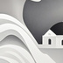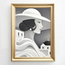エレガントなアールデコ女性とサントリーニ建築のモノクロモダンアート