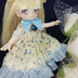 半袖青小花柄ワンピース オビツ11 ブラインドドール