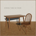アームチェア、ダイニングテーブル、ダイニングチェア、サイドテーブル(2種)、ソファ、テレビ台、ゴミ箱、ベッドの家具9点の3Dモデルです。