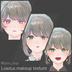 対応アバター【Lowtus(ロータス)】 https://on-air.booth.pm/items/5941406 ◆概要◆ Lowtusちゃん専用のメイクテクスチャです。 Unityだけで完結! 各パーツごとのメイクで分けてるので実際にメイクするように自分の好きな組み合わせが出来ます★ カラーも豊富で色んな改変を楽しめちゃいます! ▼内容物(textureのみ) 【一発メイクSETイエベ・ブルべ】 ・イエベメイク ・ブルベメイク こちらはメイクの参考になればとトータルメイクセットを2種類作ってみました! 【こだわりパーツごと】 ・ほくろ・そばかす(目元,頬,口元・大きめ,小さめなど) ・まつ毛(15色) ・アイシャドウ(3種各10色以上) ・チーク(3種10色以上) ・リップ(ナチュラル、濃いめ各10色以上) ・眉色変え用マスク(3種) ・涙袋(幅広/スリム10色以上)/涙袋ラメ ・shading ----------------------------------------------------- おまけ購入者限定 ・口内テクスチャ(15色) 【手順などの解説画像】※こちらの画像を見ながら設定してください! ・おすすめUnity設定 ・導入手順 ・涙袋ラメおすすめ設定 ・眉色の変え方手順 ・※動く!しゅわしゅわ瞳テクスチャを同時に使ってる方向け導入手順 Unityのみで完結出来るようにした為pngデータのみです。 Clipstudioで作成しております。 ※lilToon以外のShaderや画像編集プログラムを使って改変をしたい方の問い合わせ対応は出来かねます。ご了承ください。 ▼サムネで使用している瞳テクスチャ 合わせて使うのもおすすめです!! https://booth.pm/ja/items/6954413 ※その際は「動く!しゅわしゅわ瞳テクスチャを同時に使ってる方向け導入手順」を参考に導入お願いします ◇◆導入方法◆◇Unityのみで完結! ・お顔マテリアル(FACE_AもしくはFACE_B)のメインカラー2ndにチェックを入れます ・色の所にお好きなメイクの好きなカラーを選びテクスチャ(png画像)を入れてください ※次のメイク箇所のtextureを入れたい時には先にメインカラー2ndに入れてたテクスチャを焼き込みしてから同じように繰り返してください。 →アップロードして完成です!! ※パーツによってメインカラー2ndの合成モードを通常から加算にする場合がございます。必ずフォルダ内のメモや導入手順画像を参照ください。 文章で分かりにくいと思うのでスクショ画像での説明書を同封しております。 不具合や不明点などあれば、お気軽にお問い合わせください。