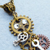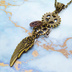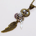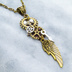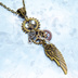 アンティークゴールド 翼と歯車を組合せたスチームパンク風のスリムなネックレス 長さ調整可