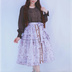 ■商品説明■ 森の中のティーパーティー スカート 約1年かけてようやく完成したAtelier Ruby × a.m factoryコラボのお洋服です! ウエストフルゴム、2段のティアードスカートとなります、 前方はボタン全開仕様、インナースカートなどと合わせて着用することもによってより華やかになります! ※ブラウス、ウエストベルト、インナースカートは参考商品のため付属しておりません。 ホームクリーニングもできます。 洗濯ネットに入れて、漂白剤、熱湯洗濯などせず通常通りの洗濯可。 ■色■ グレー ブラウン ■サイズ■ ウェスト:64~96cm(ウエストゴム) スカート丈:66cm ■素材■ 表地:ポリエステル (裏地ありません) ■購入の際の注意点■ 写真のお色と実物は、多少の違いが生じることがございます。ご了承ください。 生産ロットによって予告なしで素材変更する場合が御座います。