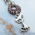 アンティークシルバー アンティークブロンズ 猫と歯車・ギアを組合せたコンパクトなキーホルダー 金具交換可