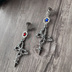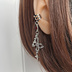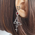 赤 2点 青 2点 月影のもと、願いを縛る銀の祈り ワイヤーで象られた神秘的な十字架と、揺れる小さな星のチャーム。 歯車とカットガラスの煌めきが、夜の静寂に浮かび上がるような幻想的な印象を与えます。 カフ部分は3本ラインのシルバー仕様で、スタイリッシュな印象を添えつつ、性別問わずお使いいただける中性的なデザインに仕上げました。 耳元に寄り添う鋭くも美しい祈りのかたち── シンプルながらも鋭利な存在感で、日常に少しの異世界を。 紅月の祈縛カフ 深紅のカットガラスが燃えるように輝く、強さと哀しみを秘めた一本。 鮮やかな赤は血のようであり、月のようでもあり── 抑えきれない衝動を内に秘めたあなたに。 【イヤーカフ 十字架 スチームパンク 赤 銀 ユニセックス】 蒼月の祈縛カフ 蒼い輝きが静かな月夜を思わせる、理性と静寂のカフ。 どこか冷たくも、柔らかくも感じられる不思議な青は、深い思索に沈むような時間に寄り添います。 静かに、凛と。 【イヤーカフ 十字架 スチームパンク 青 銀 ユニセックス】 ご使用にあたってのご注意 ・固定部分は接着剤とレジンで丁寧に加工しております。強度は高いですが、強い衝撃を与えると破損する場合がございますので、やさしくお取り扱いください。 ・金属パーツを使用しております。金属アレルギーをお持ちの方は、ご使用をお控えいただくか、十分にご注意ください。 ・イヤーカフやイヤーフックは、長時間着けても痛くなりにくい仕様ですが、着け心地には個人差がございます。 気になる点やご不安な点がございましたら、ご購入前にお気軽にお問い合わせください。