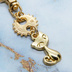 マットゴールドカラー 猫と歯車・ギアを組合せたコンパクトなキーホルダー 金具交換可