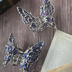 夜桜 3点 蒼月 3点 夜に舞う蝶が、幻想の光をまとい髪先を彩る 漆黒の夜に浮かぶように、蝶の羽根が光を反射し、幻想的なきらめきを放つバンス。 夜桜を思わせる淡いピンクの輝きと、月影のように蒼く揺れる光彩。 髪をまとめるたびに、ひらめく羽根が夜の物語をそっと添えます。 しっかりと留まる金具仕様で、普段使いにも特別な装いにも映えるデザインです。 夜桜幻蝶ノバンス(ピンク寄り) 夜桜の儚い彩りを閉じ込めたかのような、幻想的な輝きを放つ髪飾り。 華やかさの中に、淡い夜の気配を添えた一品です。 【夜桜 バンス 幻想 蝶 髪飾り スチームパンク ゴスロリ】 蒼月幻蝶ノバンス(青寄り) 蒼き月光を宿したかのように、深い青のきらめきが漂う髪飾り。 静謐な美しさの中に、幻想的な存在感を放ちます。 【蒼月 バンス 幻想 蝶 髪飾り スチームパンク ゴスロリ】 ご使用にあたってのご注意 ・固定部分は接着剤とレジンで丁寧に加工しております。強度は高いですが、強い衝撃を与えると破損する場合がございますので、やさしくお取り扱いください。 ・金属パーツを使用しております。金属アレルギーをお持ちの方は、ご使用をお控えいただくか、十分にご注意ください。 気になる点やご不安な点がございましたら、ご購入前にお気軽にお問い合わせください。