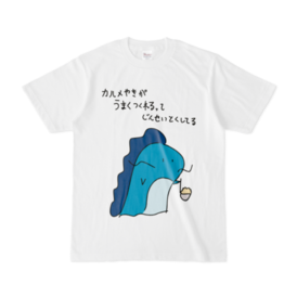 Tシャツ - XL - 白アキカンがカルメ焼きにハマった時のTシャツになります。 独特の世界観をお楽しみください。 この商品はpixivFACTORYで作られた商品です。サンプル画像は完成イメージのため、実物と異なる場合があります。