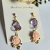 お花のチャームを見た瞬間に、「歌仙作ろう!」と決心した一品です。 歌仙カラーのドライフラワーを詰めたレジン玉に、小ぶりでとても可愛らしいチャームを下げました。 全体的に小さめサイズで軽い出来です。 ピアス・イヤリング両対応ですので、お好みの金具でご購入下さい。 2026/03/01 リメイクしました。レジン玉を宝石品質のブラジル産アメジストに変更しました。透明度が高く、カットの美しい品です。 ●アレルギー対応商品について 当店ではピアス、イヤリング、チェーン、アジャスター等にサージカルステンレス316を使用時明記しております。 体質には個人差がありますので、必ずしもアレルギーが出ないという保証ではございません。 樹脂ピアスも取り扱っておりますので、そちらもご検討下さい。 ●色褪せ・錆について ステンレス以外の、錆びやすい材質のパーツとの組み合わせの場合、そのパーツの錆びがステンレス表面に付着し「もらい錆」により錆びてしまうケースがございます。 その際は錆びをすぐに除去するようにしてください。 また、水に濡らしたりアルコール・汗等が付着しないようご注意下さい。 ●レジン作品について レジン作品は非常に繊細な為、強い衝撃を与えたり、高温・直射日光に長時間さらさないようご留意下さい。 また、水濡れやアルコール、汗などは劣化の原因となる為、触れないようにご注意下さい。 ●天然石について 当店では天然石を使用している場合、その種類を明記しております。天然石の一部は長時間の直射日光や水分に弱いものが多いです。アクセサリー用に加工されているものを仕入れておりますが、水に濡らしたり長時間直射日光にさらさないよう、ご注意下さい。