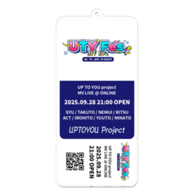 アクリルキーホルダー - 100 x 100 (mm)◆UP TO YOU projectグッズ「UTY Fes. チケット風アクリルキーホルダー」◆ 期間限定販売! 2025年9月28日開催の「UTY Fes.」チケット風アクリルキーホルダーです。 ※この商品はpixivFACTORYで作られた商品です。サンプル画像は完成イメージのため、実物と異なる場合があります。 ※ご注文は各1種ずつ、1個からとなります。 ※テンプレートサイズは「10cm×10cm」で作成しております。余白を含めておりますので、実際にはそれよりも小さなサイズでの出力となります。 ※こちらは「通常のアクリルキーホルダー」です。ホログラム仕様ではございません。 ※QRコードは「UP TO YOU project」公式HPにアクセスできる仕様となっております。今後、QRコードの都合上他サイトに繋がる可能性もございます。予めご了承ください。