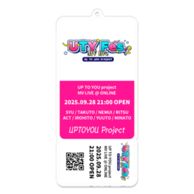 ◆UP TO YOU projectグッズ「UTY Fes. チケット風アクリルキーホルダー」◆ 期間限定販売! 2025年9月28日開催の「UTY Fes.」チケット風アクリルキーホルダーです。 ※この商品はpixivFACTORYで作られた商品です。サンプル画像は完成イメージのため、実物と異なる場合があります。 ※ご注文は各1種ずつ、1個からとなります。 ※テンプレートサイズは「10cm×10cm」で作成しております。余白を含めておりますので、実際にはそれよりも小さなサイズでの出力となります。 ※こちらは「通常のアクリルキーホルダー」です。ホログラム仕様ではございません。 ※QRコードは「UP TO YOU project」公式HPにアクセスできる仕様となっております。今後、QRコードの都合上他サイトに繋がる可能性もございます。予めご了承ください。
