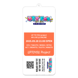 ◆UP TO YOU projectグッズ「UTY Fes. チケット風アクリルキーホルダー」◆ 期間限定販売! 2025年9月28日開催の「UTY Fes.」チケット風アクリルキーホルダーです。 ※この商品はpixivFACTORYで作られた商品です。サンプル画像は完成イメージのため、実物と異なる場合があります。 ※ご注文は各1種ずつ、1個からとなります。 ※テンプレートサイズは「10cm×10cm」で作成しております。余白を含めておりますので、実際にはそれよりも小さなサイズでの出力となります。 ※こちらは「通常のアクリルキーホルダー」です。ホログラム仕様ではございません。 ※QRコードは「UP TO YOU project」公式HPにアクセスできる仕様となっております。今後、QRコードの都合上他サイトに繋がる可能性もございます。予めご了承ください。