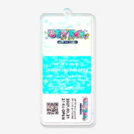 ◆UP TO YOU projectグッズ「UTY Fes. チケット風ホログラムアクリルキーホルダー」◆ 期間限定販売! 2025年9月28日開催の「UTY Fes.」チケット風ホログラムアクリルキーホルダーです。 ※この商品はpixivFACTORYで作られた商品です。サンプル画像は完成イメージのため、実物と異なる場合があります。 ※ご注文は各1種ずつ、1個からとなります。 ※テンプレートサイズは「10cm×10cm」で作成しております。余白を含めておりますので、実際にはそれよりも小さなサイズでの出力となります。 ※こちらは「ホログラムアクリルキーホルダー」です。 ※QRコードは「UP TO YOU project」公式HPにアクセスできる仕様となっております。今後、QRコードの都合上他サイトに繋がる可能性もございます。予めご了承ください。