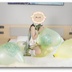ナヒーダがハート形の風船を口で膨らませて破裂させる