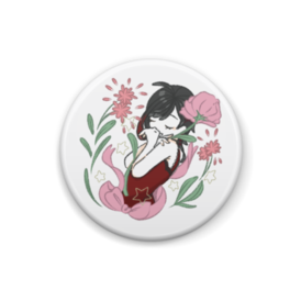 花を抱くあおいの缶バッジ ※この商品はpixivFACTORYで作られた商品です。サンプル画像は完成イメージのため、実物と異なる場合があります。