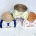 ぬいぐるみ用のカンカン帽です。 クラシカルに花柄×くすみカラーのリボンでまとめました。 シンプルなリボンのみを巻いたものと、よりリッチなレースを巻いたものの2種類をご用意しています。(画像3枚目) 色味はそれぞれ3種からお選びいただけます。 ・ピンク×グレージュ ・ホワイト×ネイビー ・イエロー×ピスタチオ まんじゅうシリーズや10〜12センチぬいにはジャストサイズで、ともぬいやぬいっこなどのサイズのぬいぐるみにはミニハットとしてお使いいただけます。 ・内寸約170mm ・直径(つば含め)約80mm ※手作業で製作しているため、若干の差があります。 ※強い力で扱うと破損する恐れがあります。ご注意ください。 ※自宅のぬいに合わせて製作しております。ぬいの個体差によって着脱が難しい場合があります。