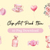 水彩風ピンクのアンティーク・クリップアートセット(PNG形式)
