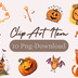 ハロウィンの季節にぴったりな、手書き風の可愛いクリップアート素材セットです。 オレンジを基調とした柔らかな色合いで、親しみやすいデザインを10点ご用意しました。魔女帽子、かぼちゃ、黒猫など、ハロウィンらしいモチーフを中心に、ほっこりとした雰囲気に仕上げています。