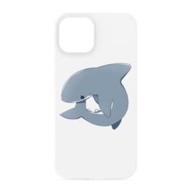 iPhoneケース - iPhone 13 - 正面印刷のみしっぽを噛むサメです。わんちゃんがしっぽを噛むところをみて描きました。 この商品はpixivFACTORYで作られた商品です。サンプル画像は完成イメージのため、実物と異なる場合があります。
