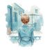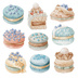 「カフェシリーズ」 水色・ブルー イラストセット|水彩風アンティーク調・可愛いクリップアート12点セット(PNG背景透過)