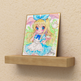 透明水彩イラスト 不思議の国のアリスちゃん 複製ミニ色紙(サイン入り)