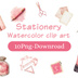 水彩画風 ピンクアンティーク文具クリップアートセット(全10種類/PNG)