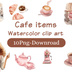 水彩画風 ピンクアンティーク カフェアイテム クリップアートセット(全10種類/PNG)
