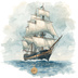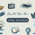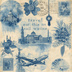 アンティーク×水彩ブルーの旅シリーズ クリップアートセット(全15点・PNG背景透過)