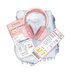 【旅行シリーズ】水彩画風 ピンクと水色の旅行モチーフ クリップアート 12点セット (PNG背景透過)