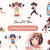 ゆるふわ系アニメ風 フィットネス女子クリップアート素材(10種類セット)