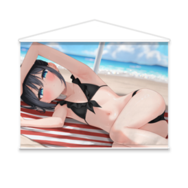 水着は着たいけど泳ぐのはしんどい…でもこの世は暑すぎるよねぇ ※タペストリー用のスエード生地は「シングルスエード」を指し、光沢があり、発色が良く、サラサラとした手触りが特徴です。一方、「ダブルスエード」は、その約2倍の厚みを持つ生地で、裏写りしにくく、マットな質感で高級感があります。