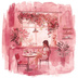 ピンクの水彩画風アンティーク旅行クリップアートセット (PNG形式)