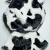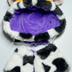 フワフワで少し毛足長めの牛柄ファーと紫色のボアを使用しています。
