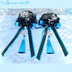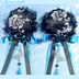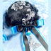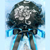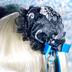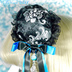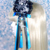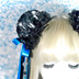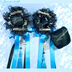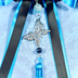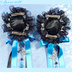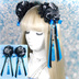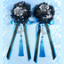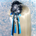 【受注生産】《☥》ダブルリボンタッセル付きお団子カバー カラー▷黒×シルバー×青(接合パーツ、蝶チャームシルバーカラーver.)