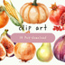 水彩風アンティークタッチの秋の野菜と果物クリップアートセット【PNG背景透過素材】