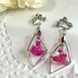 BAEモチーフのイヤリング。 三角形レジンの中には、各キャラクターのイメージカラーのオーロラフレークを封入。 ドライフラワー(スターフラワー)は、枠に囚われない3人のイメージから、レジンに収まらずはみ出るデザインにしました。 皮膚との直接接触部分のパーツには、サージカルステンレスやニッケルフリーを使用しておりますが、金属アレルギーをお持ちの方はご注意ください。 [サイズ]約7cm(金具含む) [重量]片側 約3g(金具含む) ※使用素材や花材は変更になる可能性があります ※花材の大きさや色味は仕入れ状況により差異があります ※商品の一部にレジンを使用しています ※ピアス(キャッチ)のみ制作の関係上、丸カンが1つ増えます(金額は変わりません)