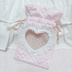 11〜16cmぬい用 ハート型の窓の巾着ポシェット ・ラメ有りのビニールです ・ハート柄のコットンレースにリボン柄のチュールレースを重ねています ・キルティングにはドットチュールを重ねています ♡16cmぬい ハート窓にお顔がフィットします ♡11〜15cmのぬい 足が浮いてしまう場合、足元の高さを足すかお洋服で厚みを出していただくとフィットします ♡ハート窓はポケット式 二重になっているので、トレカやチェキなど小物をはさめます(画像参照) ♡両サイドに金具付き お手持ちのストラップをつけてショルダーバッグにすることができます(画像参照) ♡今回の通販分は、お支払い確定後3日以内を目処にネコポスで発送いたします
