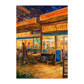 この商品はpixivFACTORYで作られた商品です。サンプル画像は完成イメージのため、実物と異なる場合があります。 満天の星空とネオンサインが響き合うクラシックダイナー。水彩油絵風のタッチで幻想的な夜を表現しました。